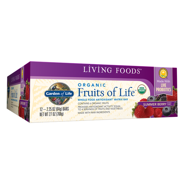 - Living Foods Organic Fruits of Life—entire nourishment antioxidant† grid bar containing 6 natural organic products with an invigorating summer berry taste.