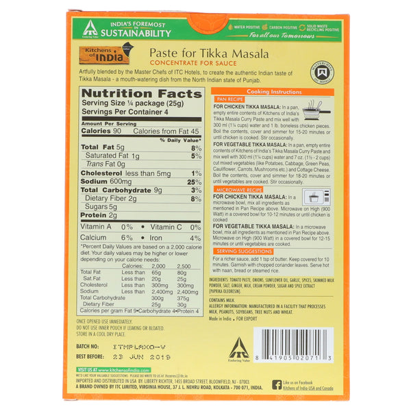 - For Chicken Tikka Masala: In a skillet, void whole substance of Kitchens of India's Tikka Masala Curry Paste and blend well with 300 ml (1 ¼ glasses) water and 1 lb boneless chicken pieces. Heat up the substance, spread and stew for 15-20 minutes or until chicken is cooked. Blend every so often.
